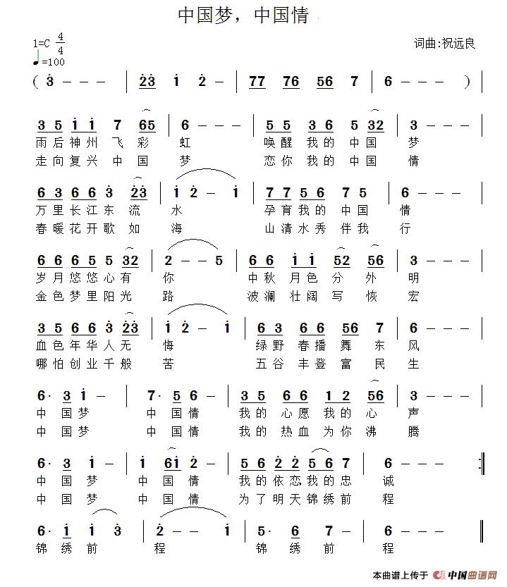 关于《中国梦,中国情》曲谱的评论