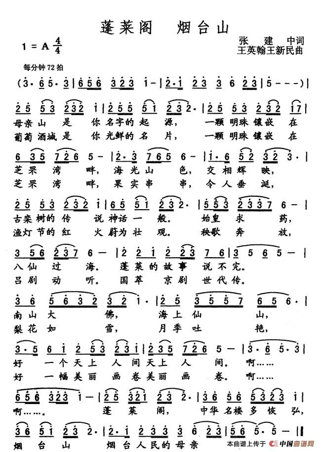 关于《蓬莱阁 烟台山》曲谱的评论