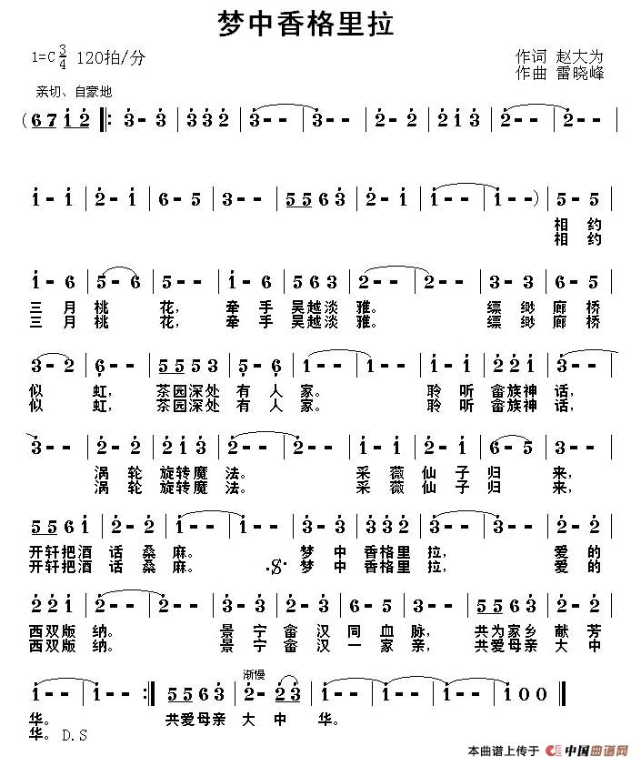 关于《梦中香格里拉》曲谱的评论