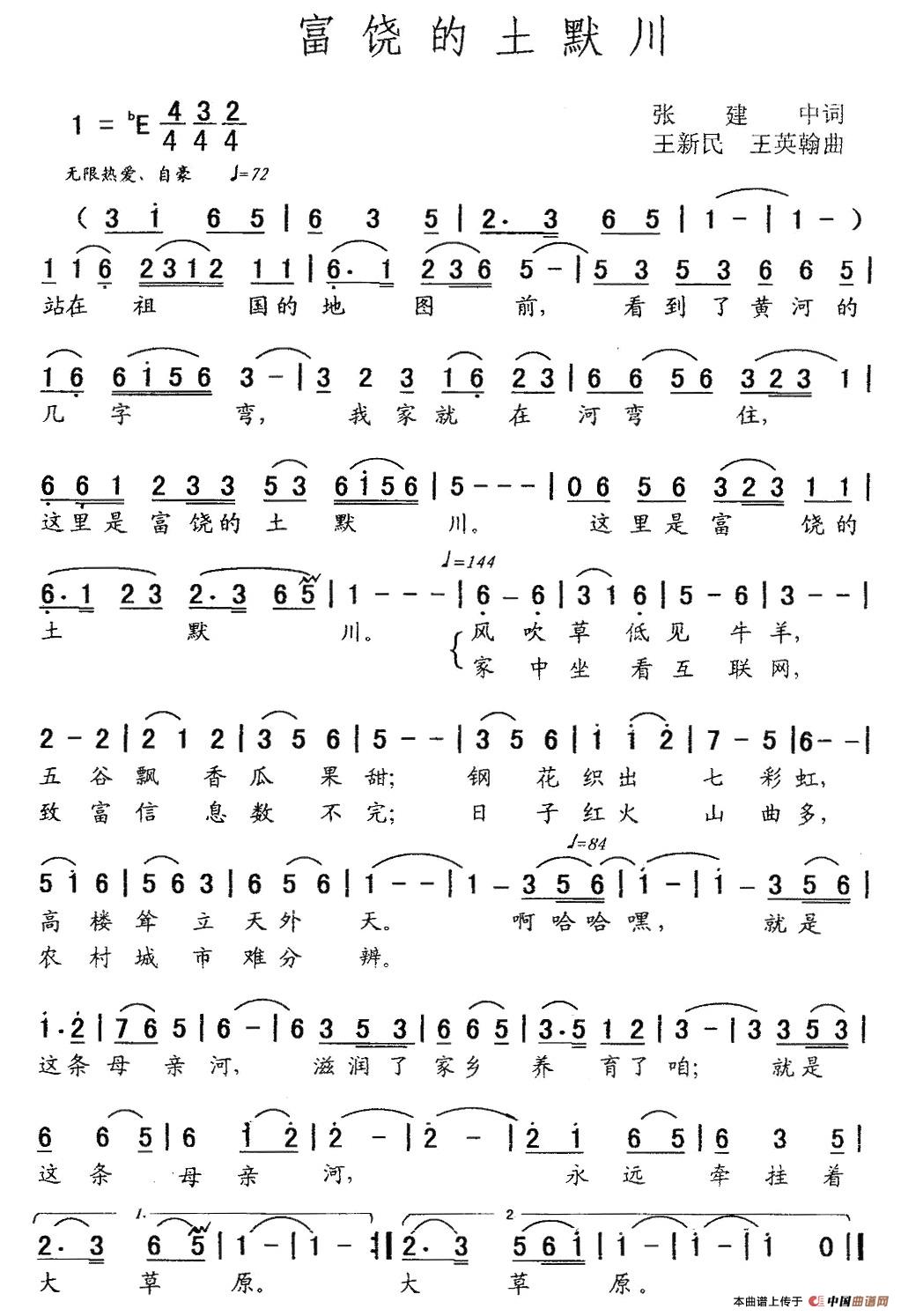 关于《富饶的土默川》曲谱的评论