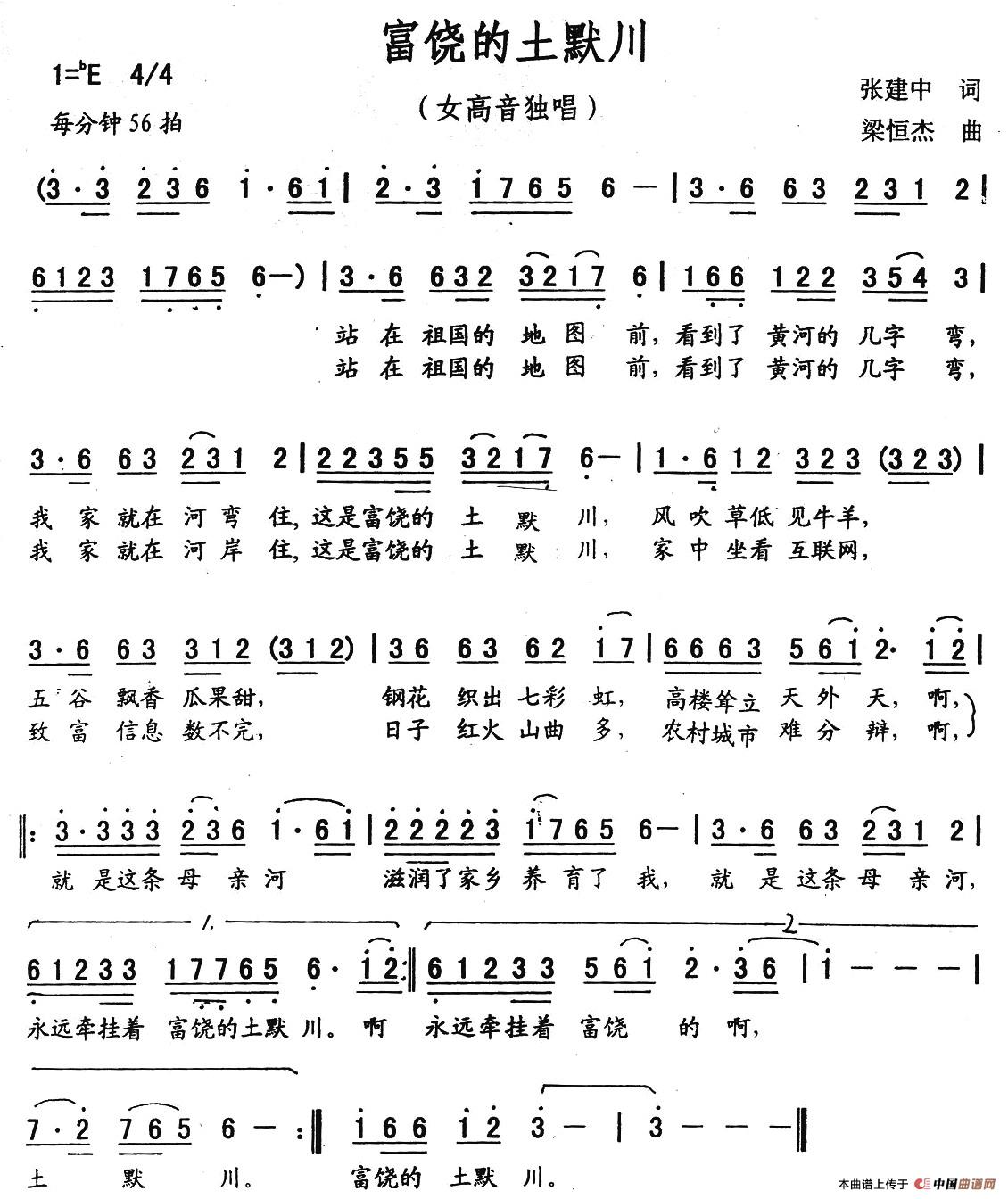 关于《富饶的土默川》曲谱的评论
