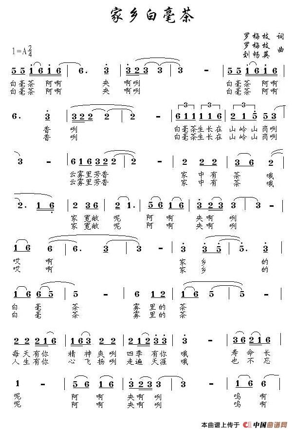 关于《家乡的白毫茶》曲谱的评论