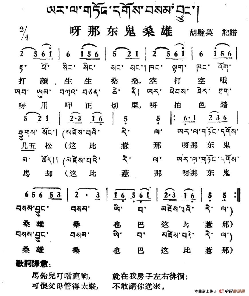 呀那东鬼桑雄(藏族民歌、藏文及音译版)