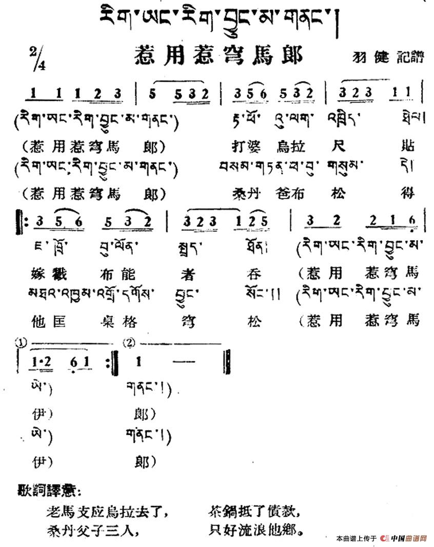 惹用惹穹马郎(藏族民歌、藏文及音译版)