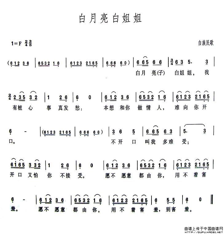 关于《白月亮白姐姐》曲谱的评论