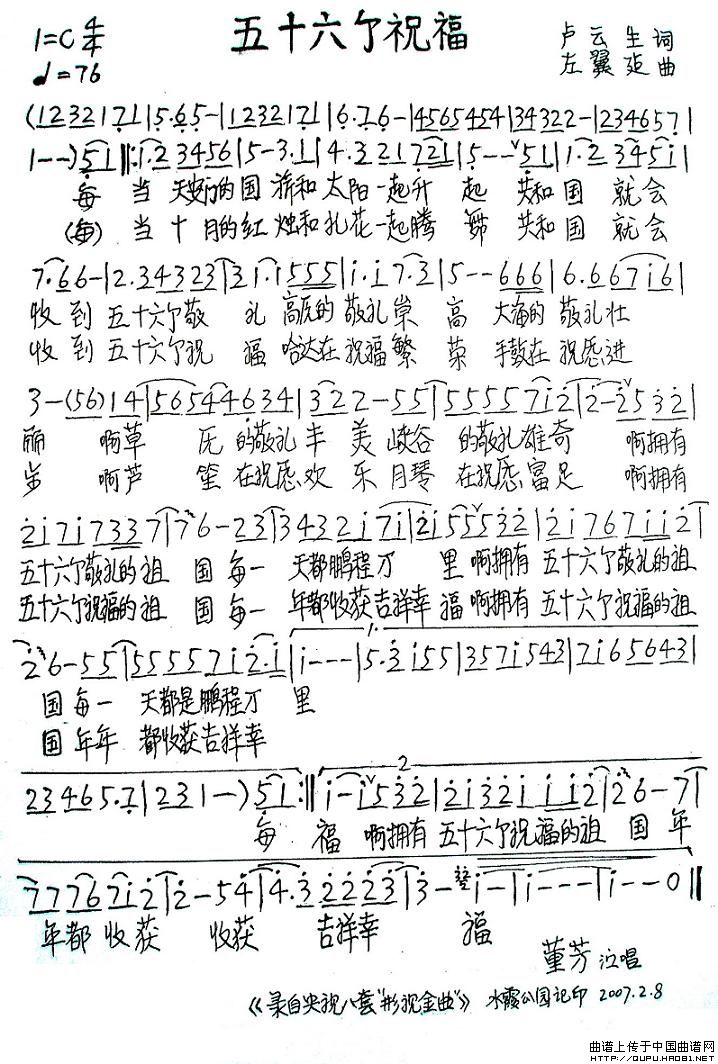 关于《五十六个祝福》曲谱的评论