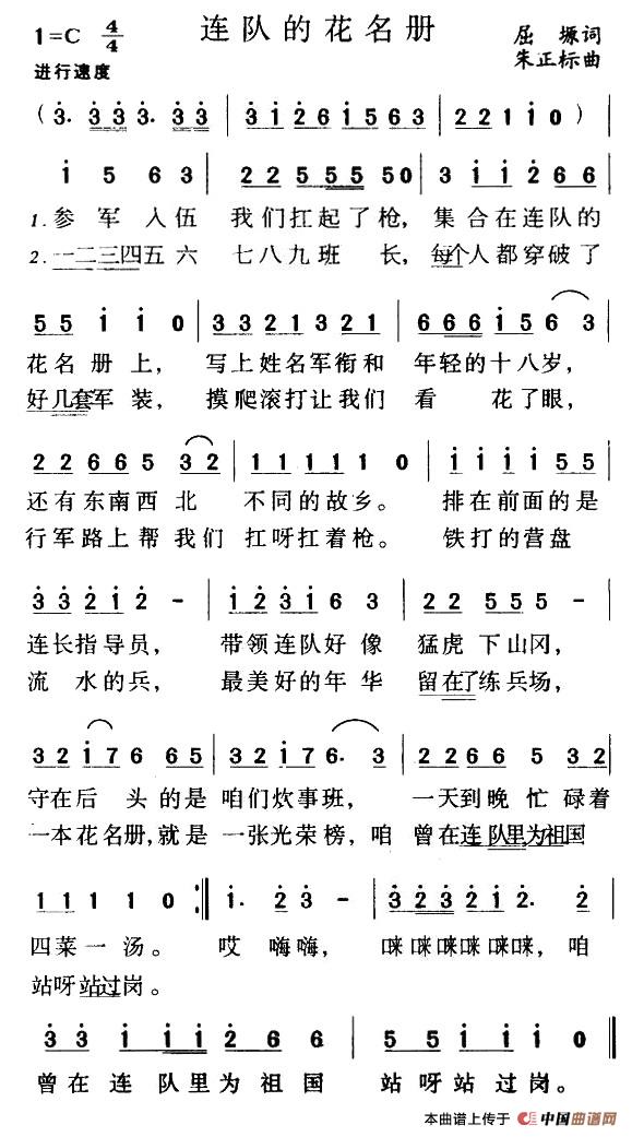关于《连队的花名册》曲谱的评论