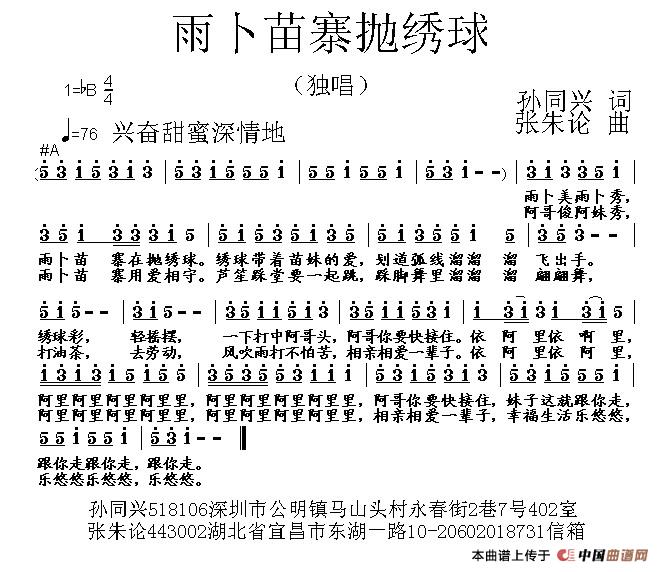 关于《雨卜苗寨抛绣球》曲谱的评论