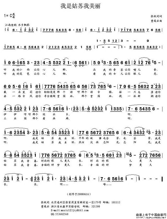 关于《我是姑苏我美丽》曲谱的评论