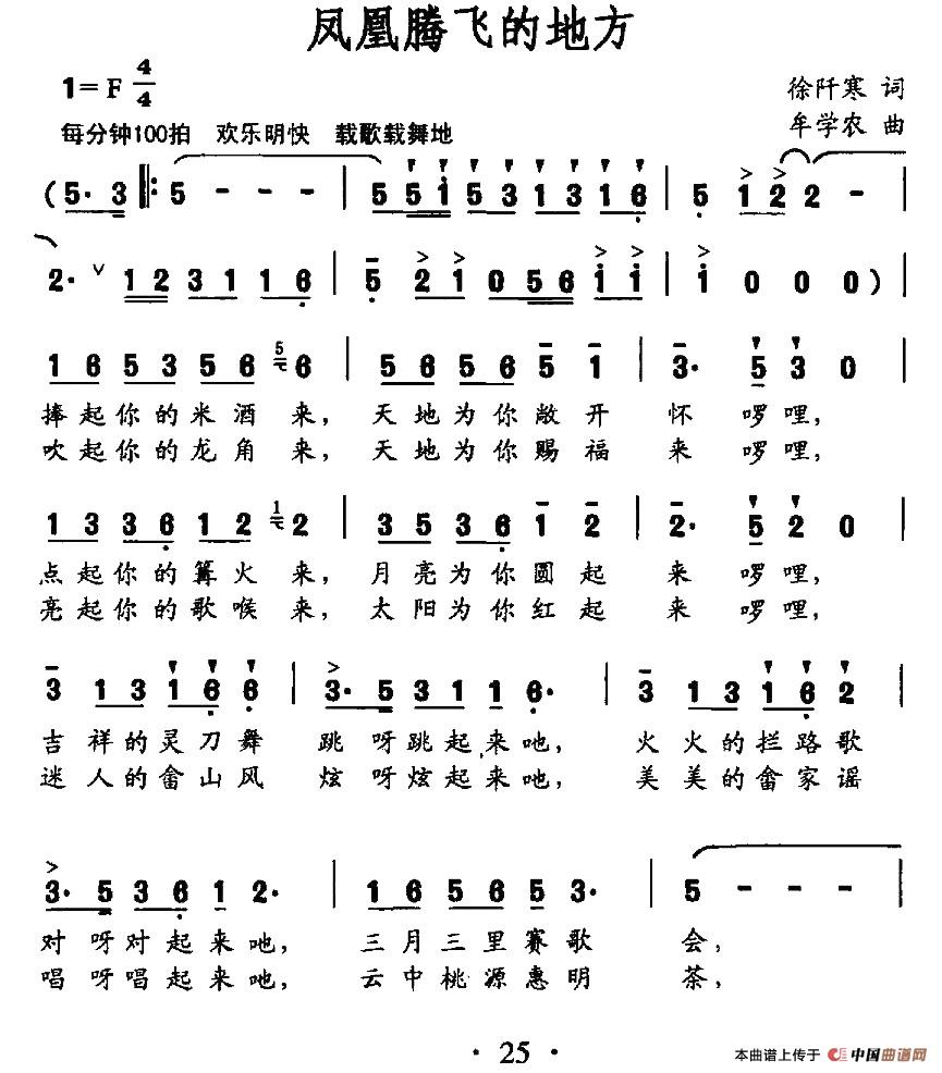 当前位置: 首页 民歌曲谱 七字歌名 凤凰腾飞的地方(徐阡寒词 牟学农曲)