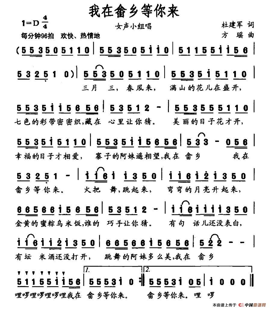 关于《我在畲乡等你来》曲谱的评论