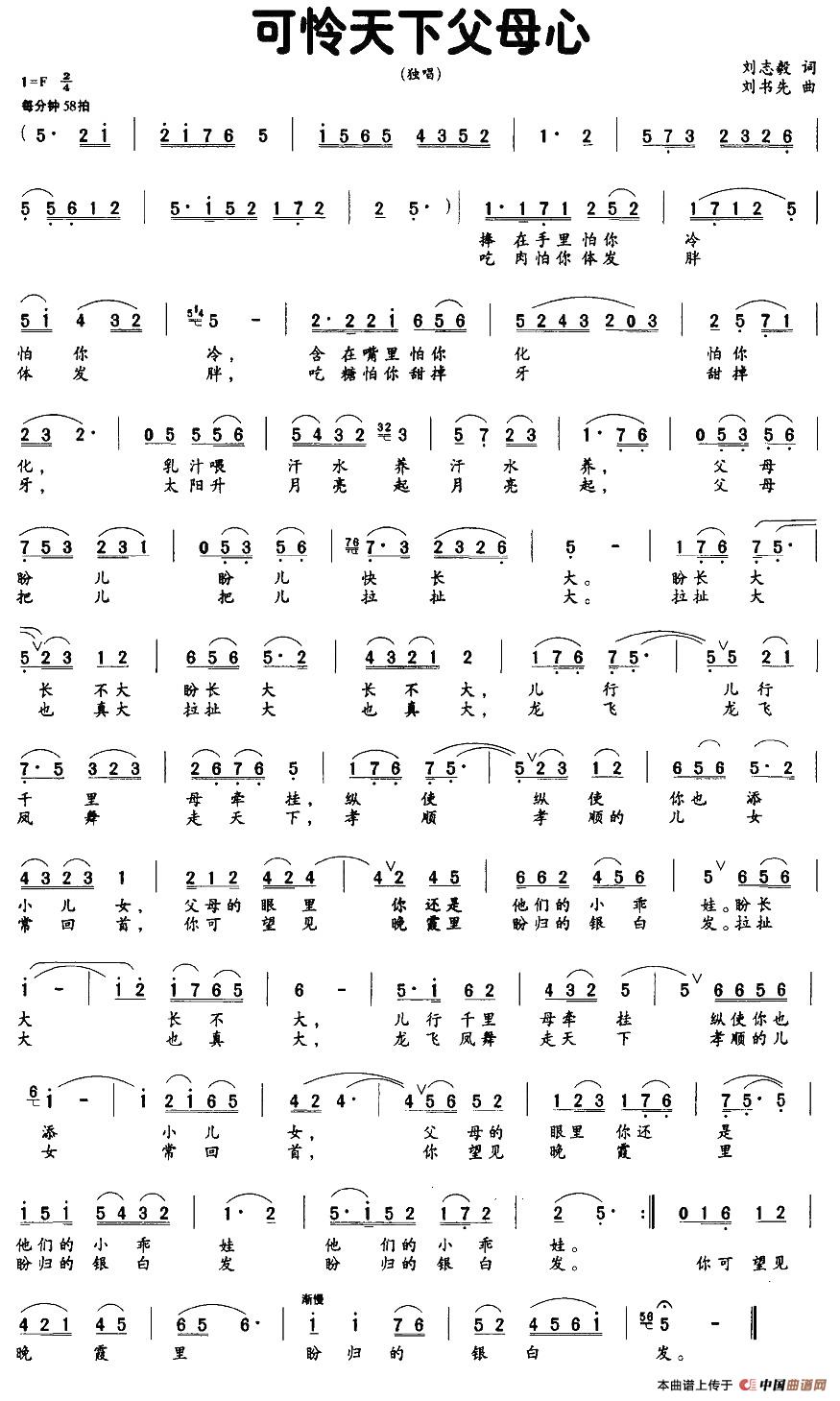 关于《可怜天下父母心》曲谱的评论