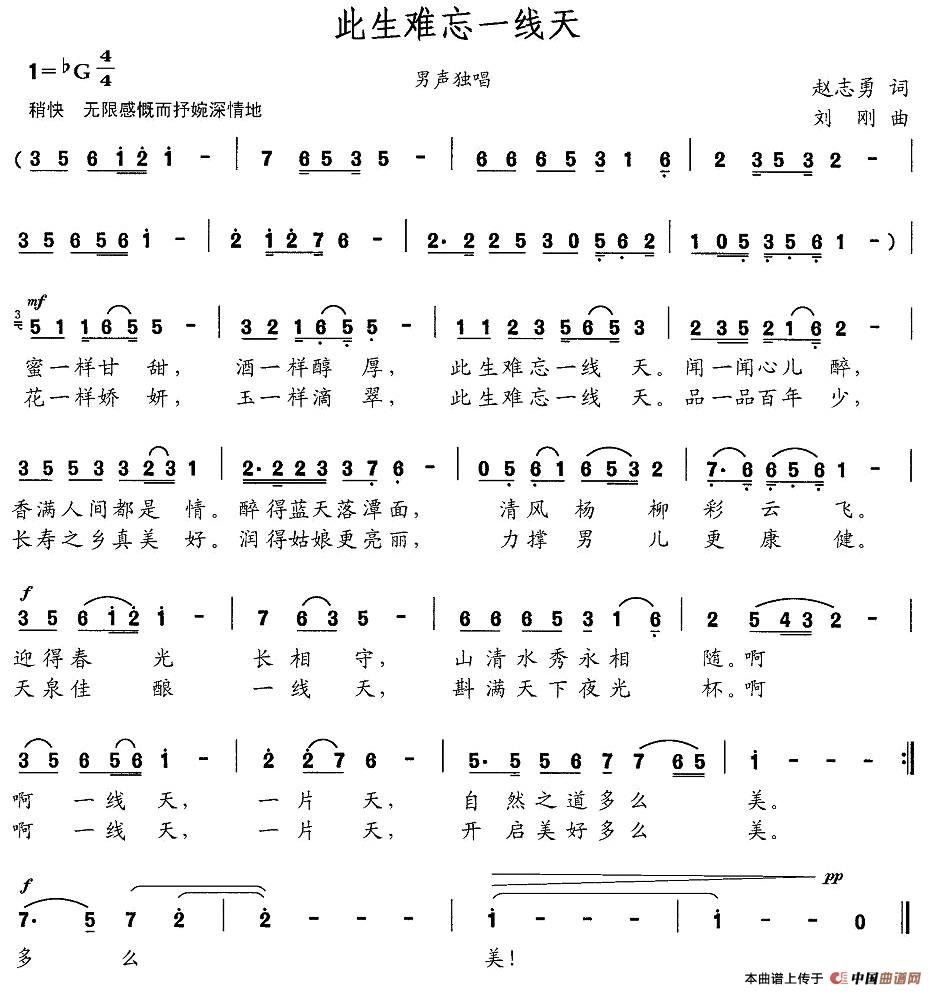 当前位置: 首页 民歌曲谱 七字歌名 此生难忘一线天(赵志勇词 刘刚曲)