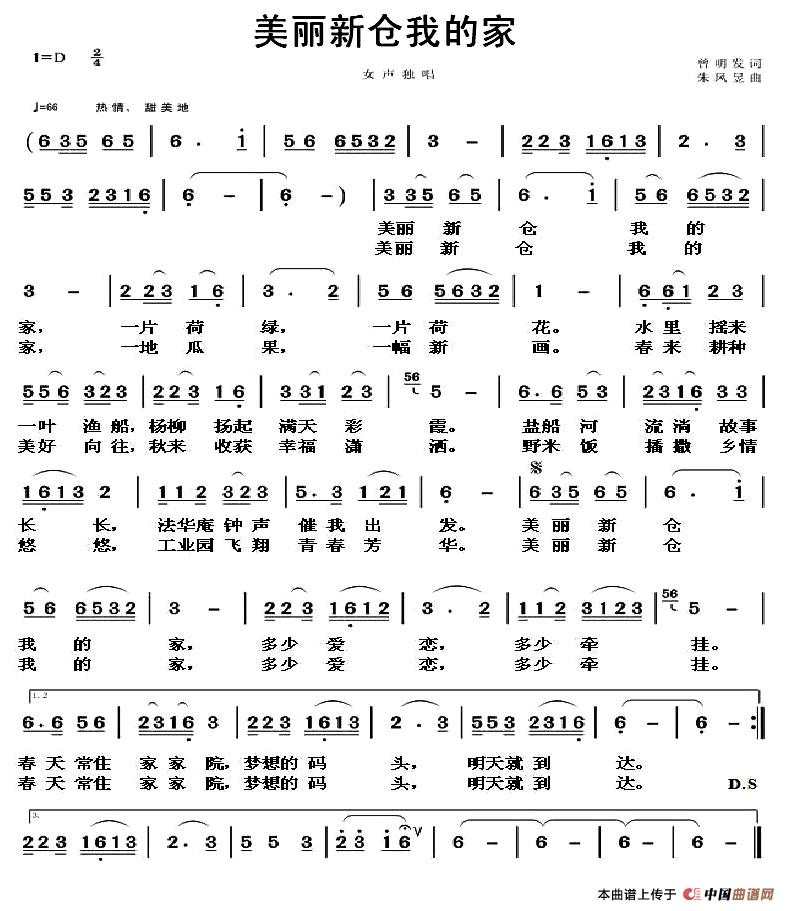 关于《美丽新仓我的家》曲谱的评论