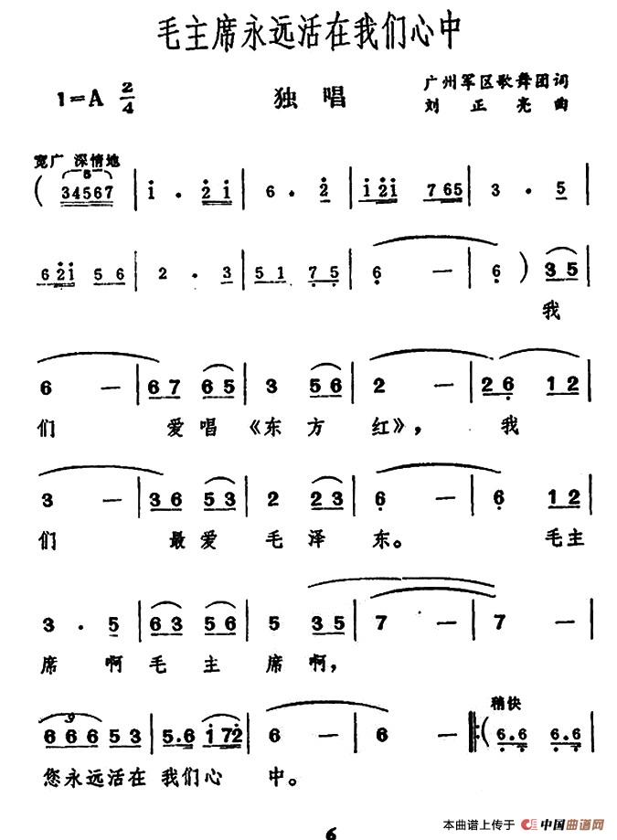 毛主席永远活在我们心中(广州军区歌舞团词 刘正亮曲)