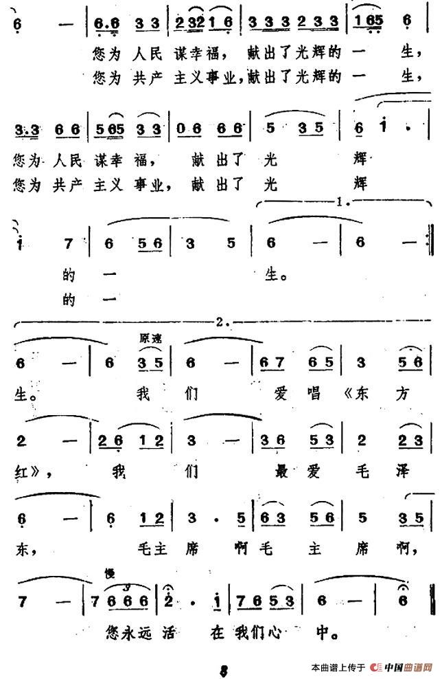 关于《毛主席永远活在我们心中》曲谱的评论