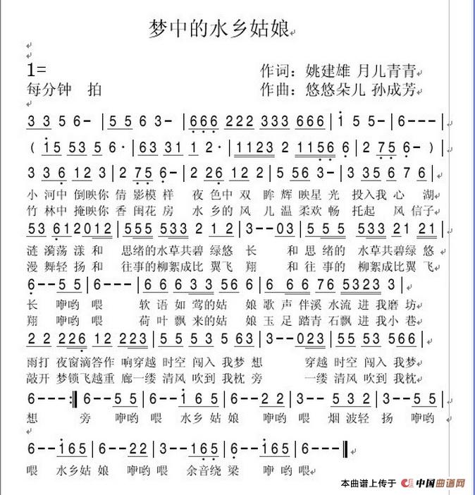 梦里的水乡姑娘(姚建雄 月儿青青词 悠悠朵儿 孙成芳曲)