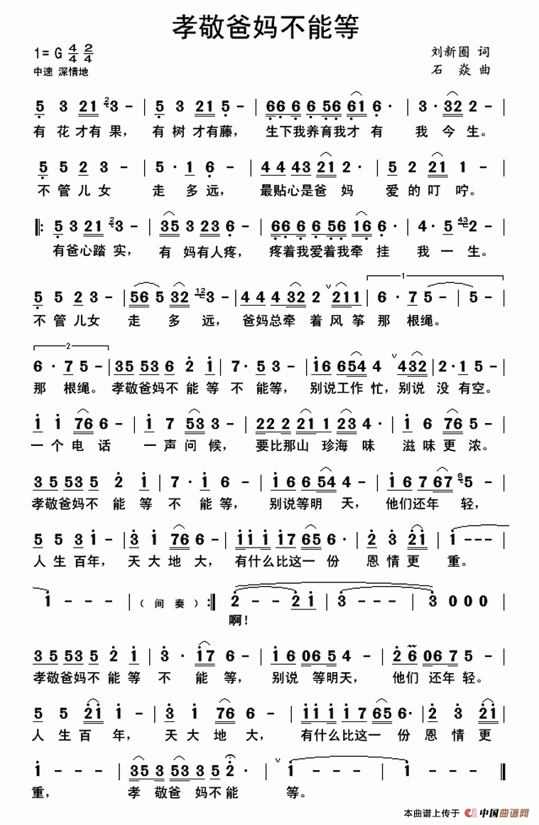 致谢:《中国曲谱网》衷心感谢作者老师馈赠原版歌谱!