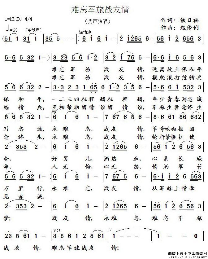 关于《难忘军旅战友情》曲谱的评论