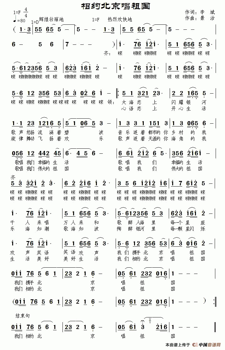 关于《相约北京唱祖国 》曲谱的评论