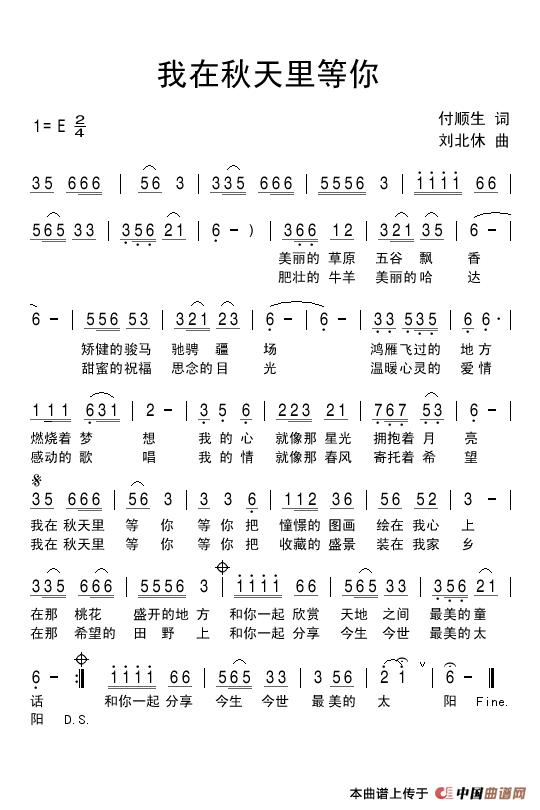 关于《我在秋天里等你》曲谱的评论