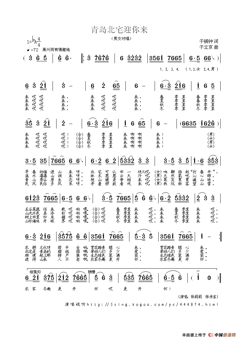 《青岛北宅迎你来》文本歌词