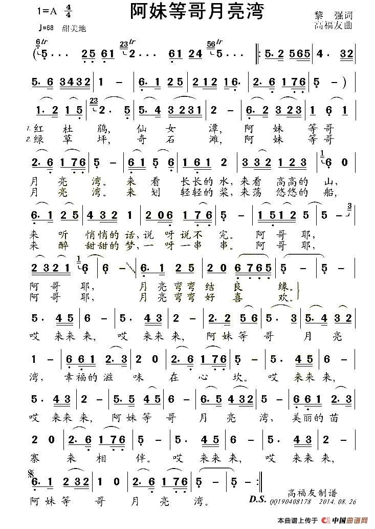 关于《阿妹等哥月亮湾》曲谱的评论