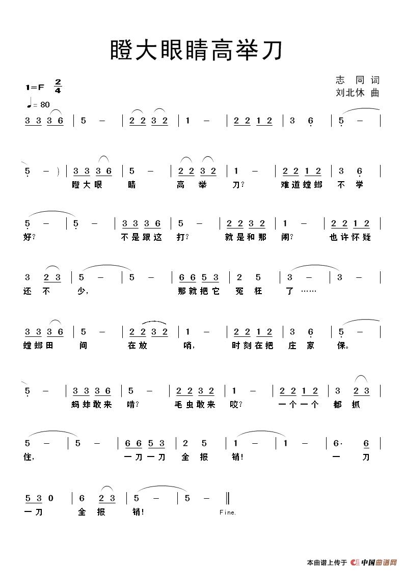 关于《瞪大眼睛高举刀》曲谱的评论