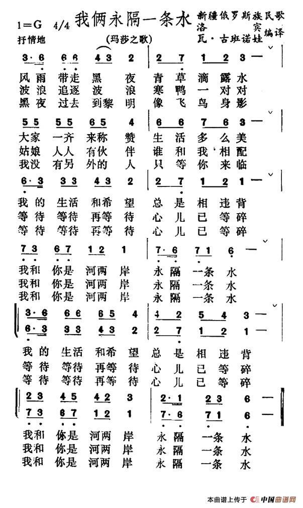 我俩永隔一条水(新疆俄罗斯族民歌)