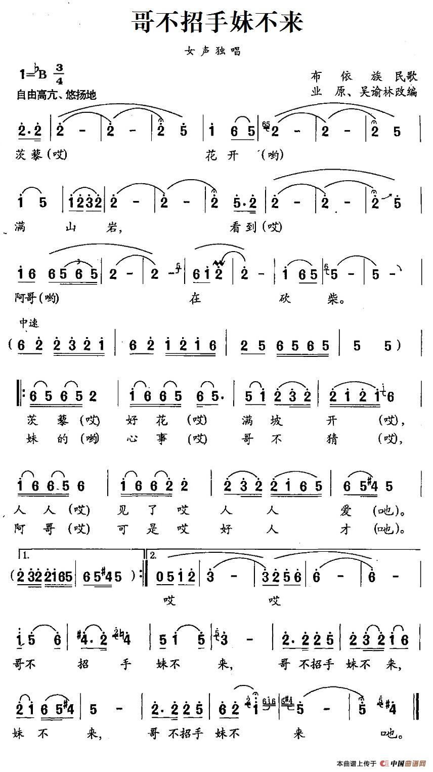哥不招手妹不来(布依族民歌)