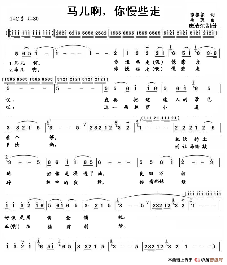 马儿啊,你慢些走(李鉴尧词 生茂曲)
