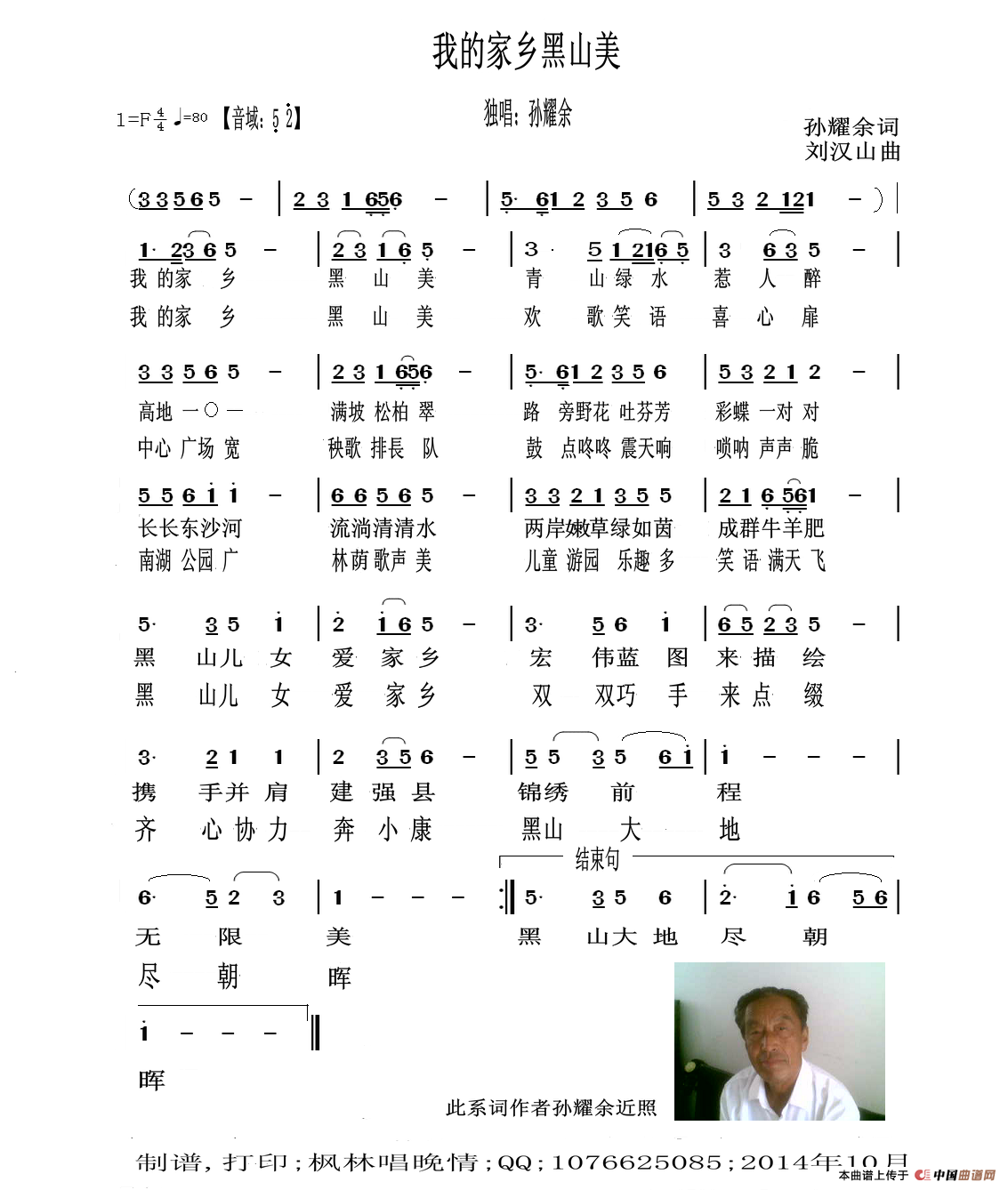 作词:孙耀余   作曲:刘汉山   演唱(奏):孙耀余   来源:自创   上传:枫林唱晚情   日期:2014-10-25   浏览次数: