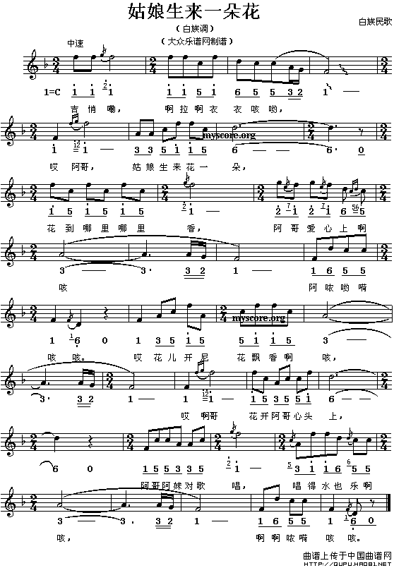 关于《姑娘生来一朵花》曲谱的评论