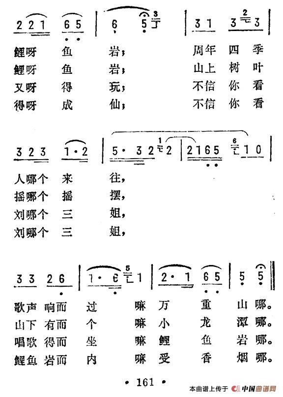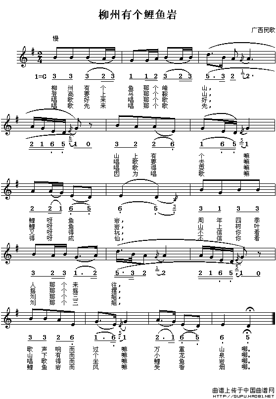 关于《柳州有个鲤鱼岩》曲谱的评论