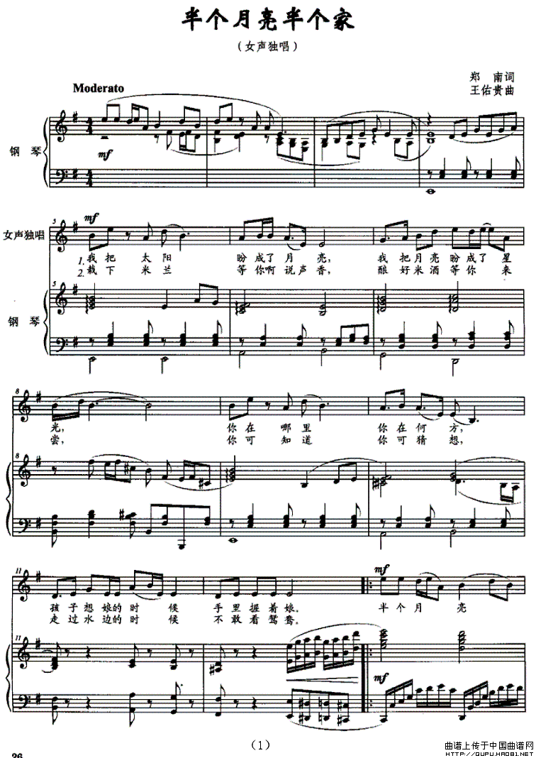 著名作曲家王佑贵倾情十年之作《大路之子》交响音乐会曲目之一。由歌手姚贝娜演唱的《半个月亮半个家》,曲调优美动听,内容深情悠长。据说,这首歌,是王佑贵在电话里一句一句教会她唱的。