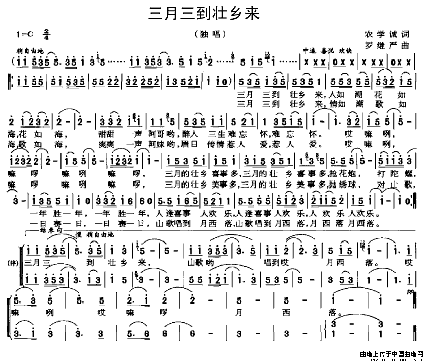 关于《三月三到壮乡来》曲谱的评论