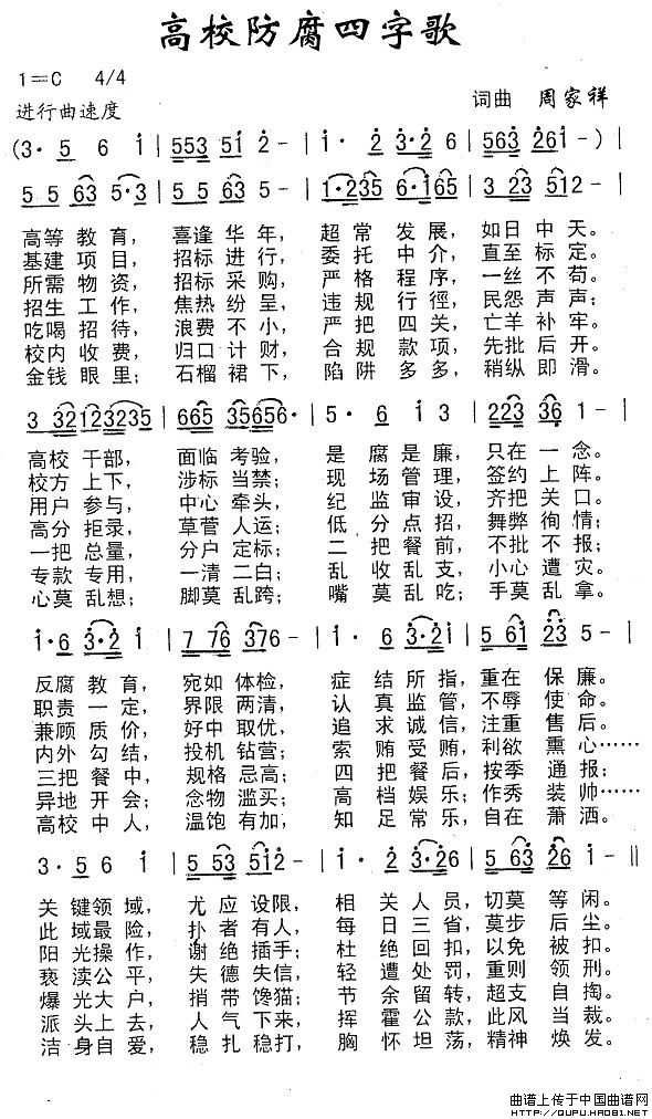 关于《高校防腐四字歌》曲谱的评论