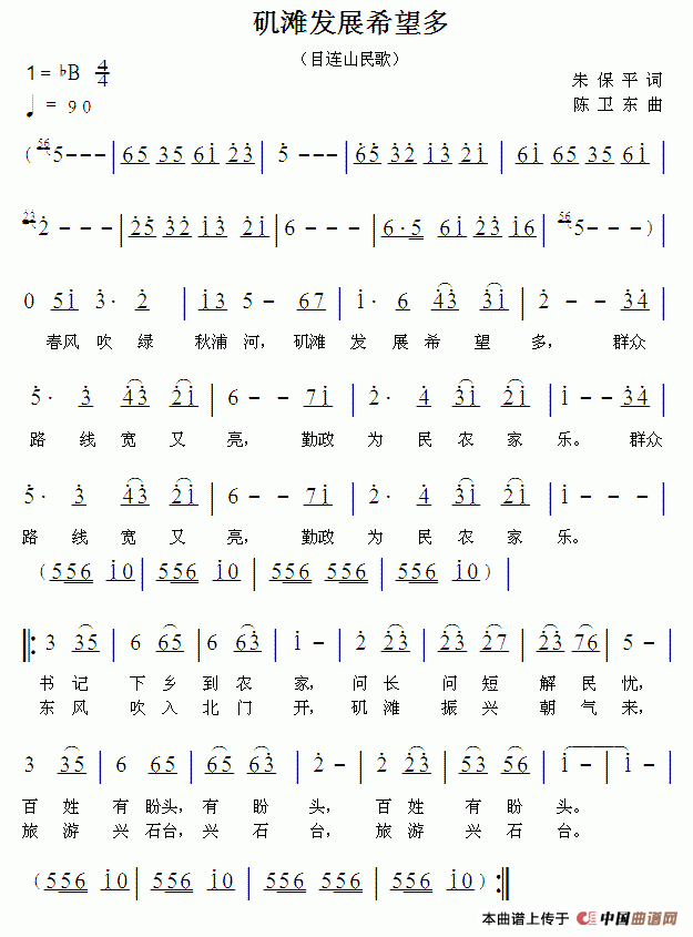 关于《矶滩发展希望多》曲谱的评论
