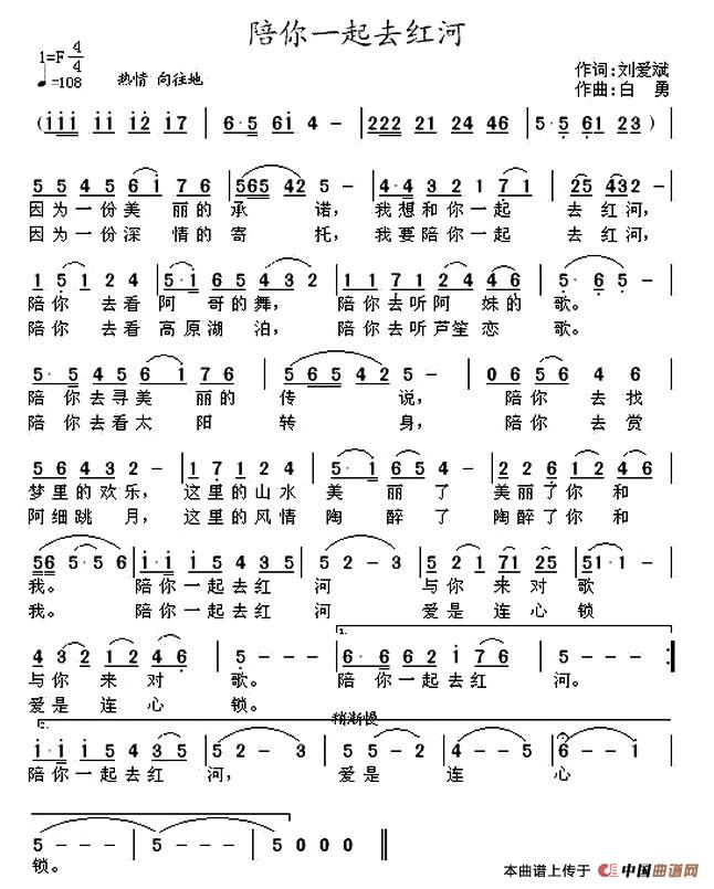 关于《陪你一起去红河》曲谱的评论