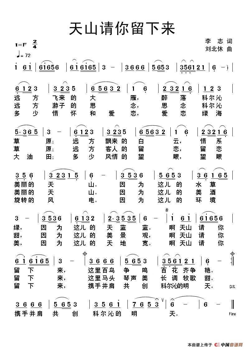 提示:在曲谱图片上单击右键,选择“图片另存为...”即可将曲谱保存到您的电脑中,打印时候可将图片插入到WORD中,调整合适大小打印即可。