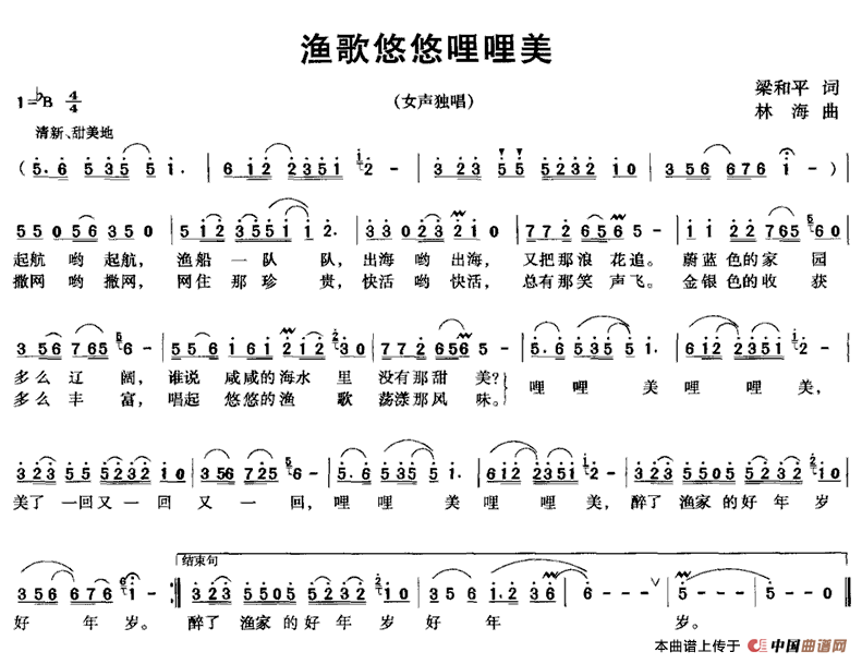 关于《渔歌悠悠哩哩美》曲谱的评论