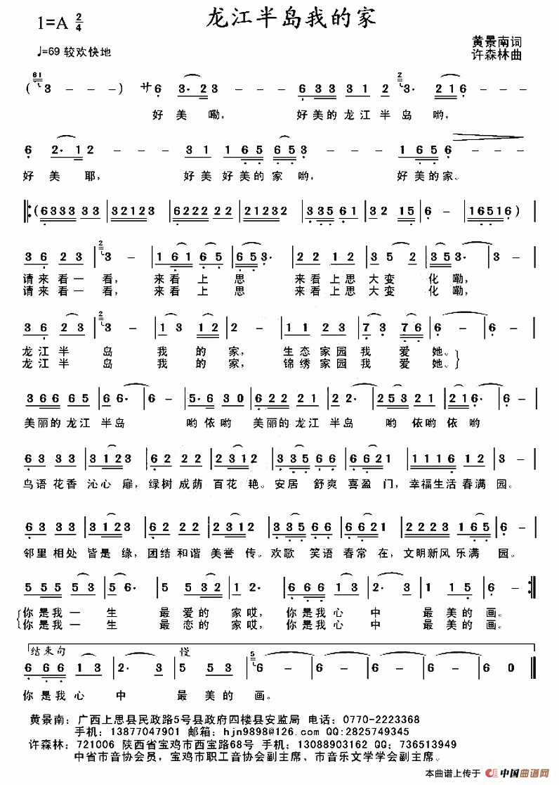 关于《龙江半岛我的家》曲谱的评论