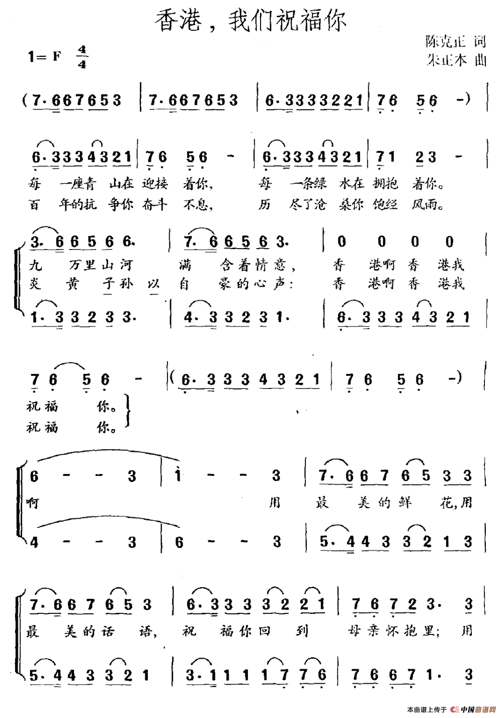 关于《香港,我们祝福你》曲谱的评论