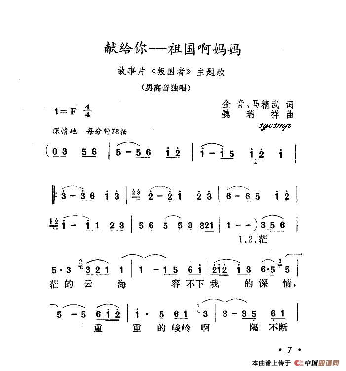 关于《献给你,祖国妈妈》曲谱的评论