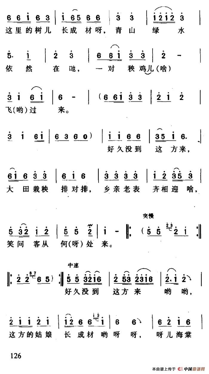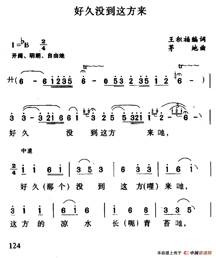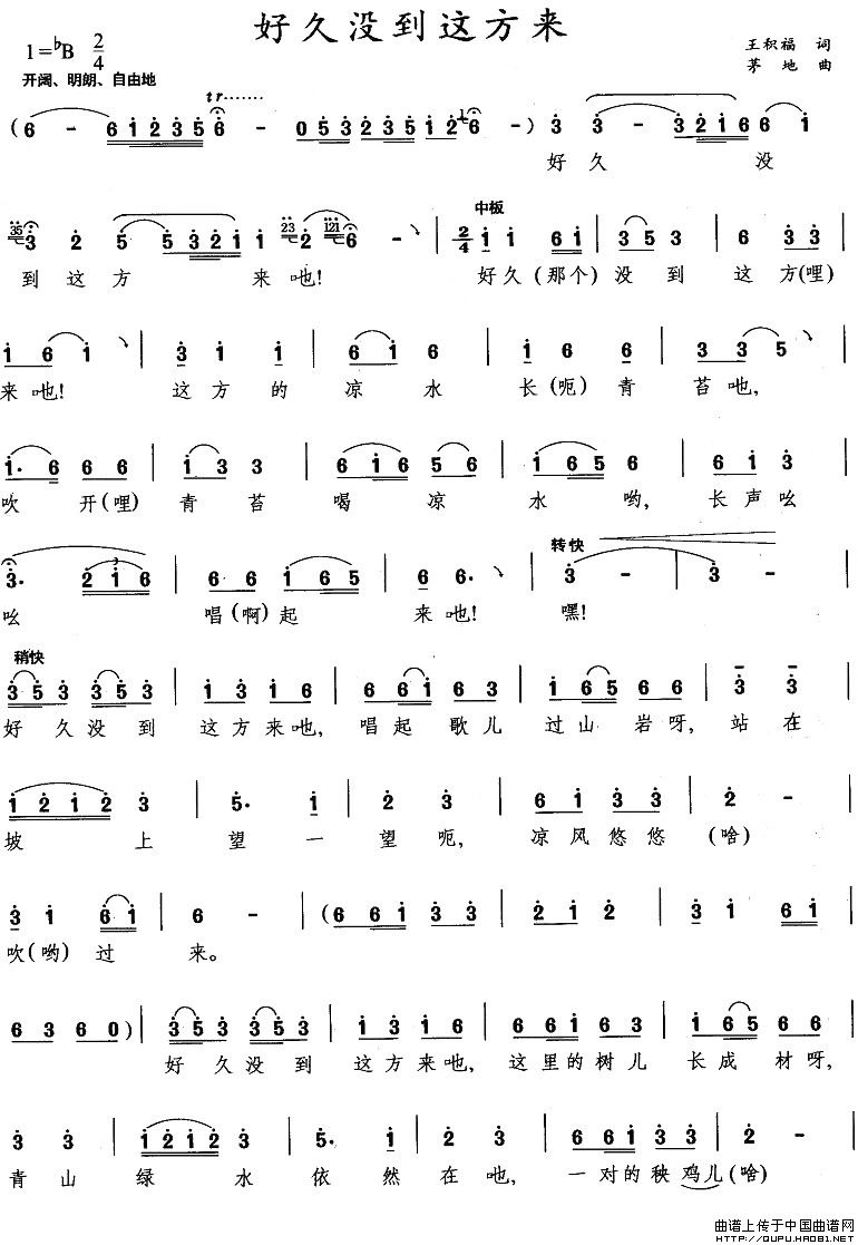 《好久没到这方来》是我们‘四川民歌’,很多歌手都喜欢演。我也是这样,曲调很有川味;往往很多人的填词就让人‘望而止步’,不敬人意,更是不合当前时代的节拍。中国梦是全民的梦!加快新农村建设是国家下达的重任,我认为‘歌词’就应从这里入手。我有点新的设想……有亊外出,下次再讲。 [回复]