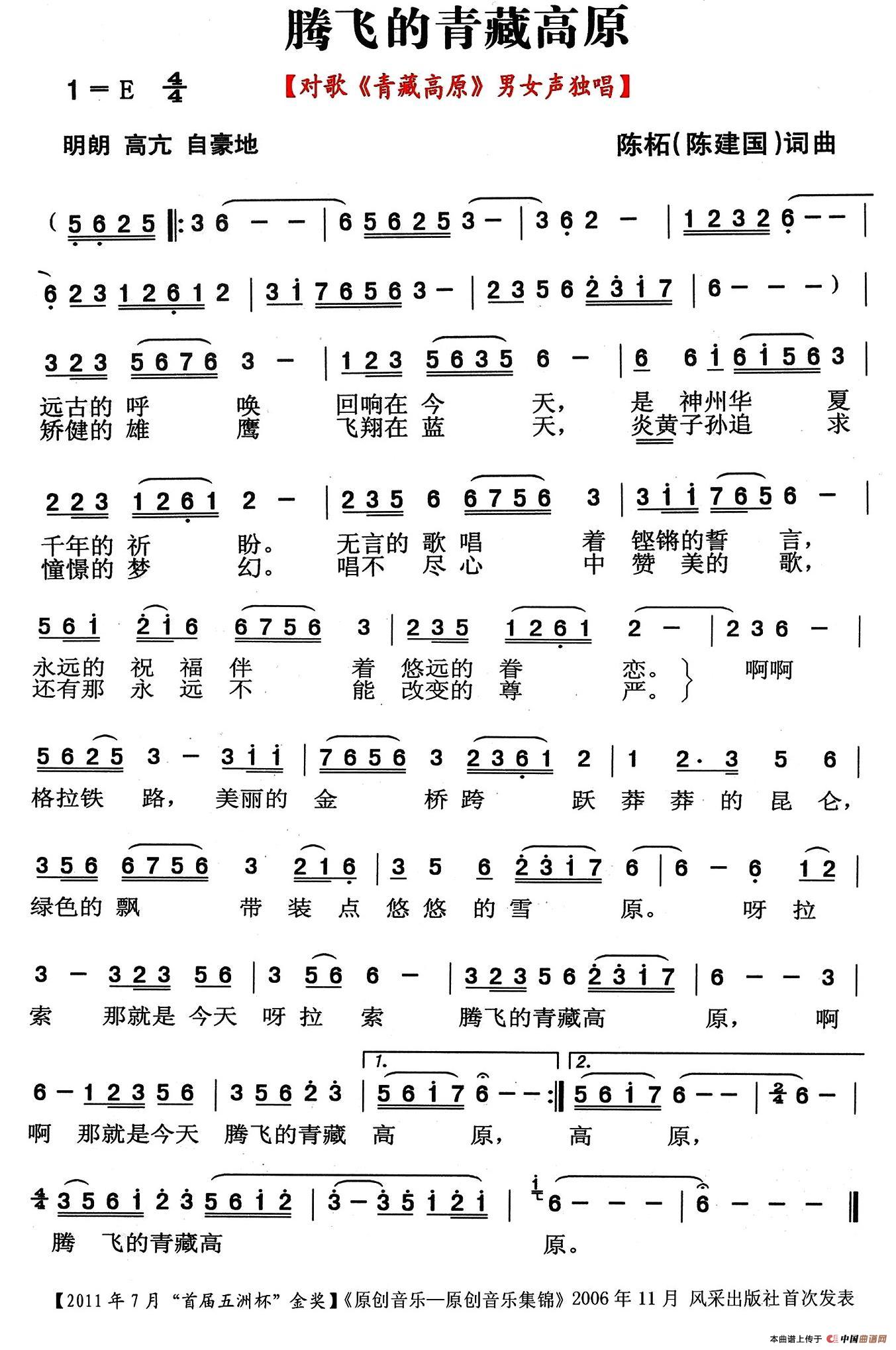 腾飞的青藏高原(陈建国词 陈建国曲)