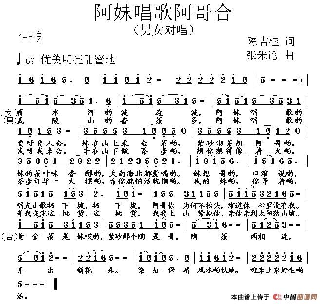 关于《阿妹唱歌阿哥合》曲谱的评论