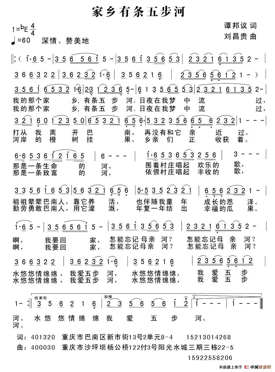关于《家乡有条五步河》曲谱的评论