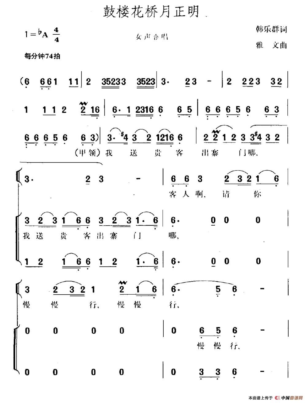 提示:在曲谱图片上单击右键,选择“图片另存为...”即可将曲谱保存到您的电脑中,打印时候可将图片插入到WORD中,调整合适大小打印即可。
