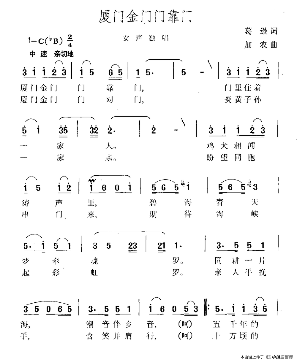 关于《厦门金门门靠门》曲谱的评论